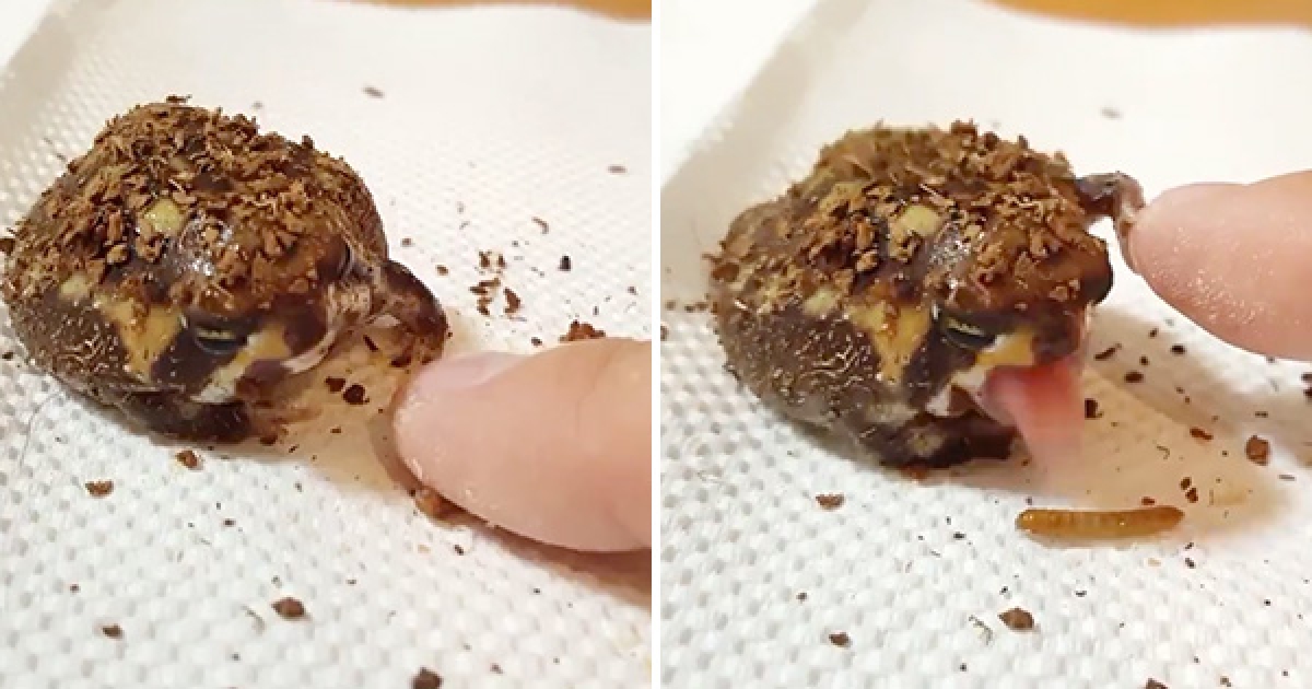 藏住蛙蛙食物會怎樣? 牠7pupu伸小手推:不要妨礙我吃食物!