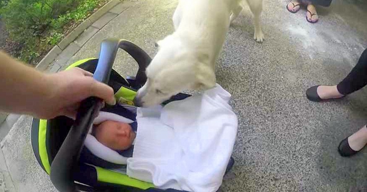 介紹新生寶寶給金金認識 牠興奮一路狂跟:噢~他好可愛哦❤