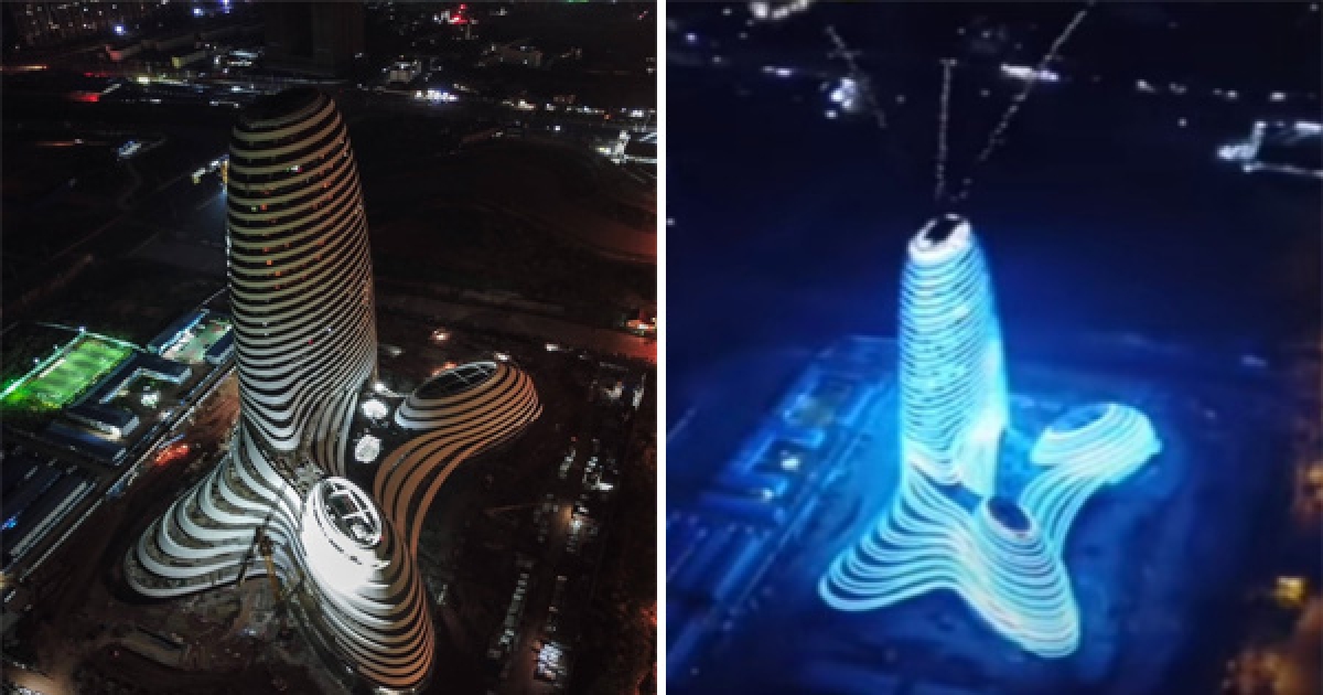 廣西砸87億蓋奇形大樓 網友看「煙火噴射」都想歪:畫面好害羞哦