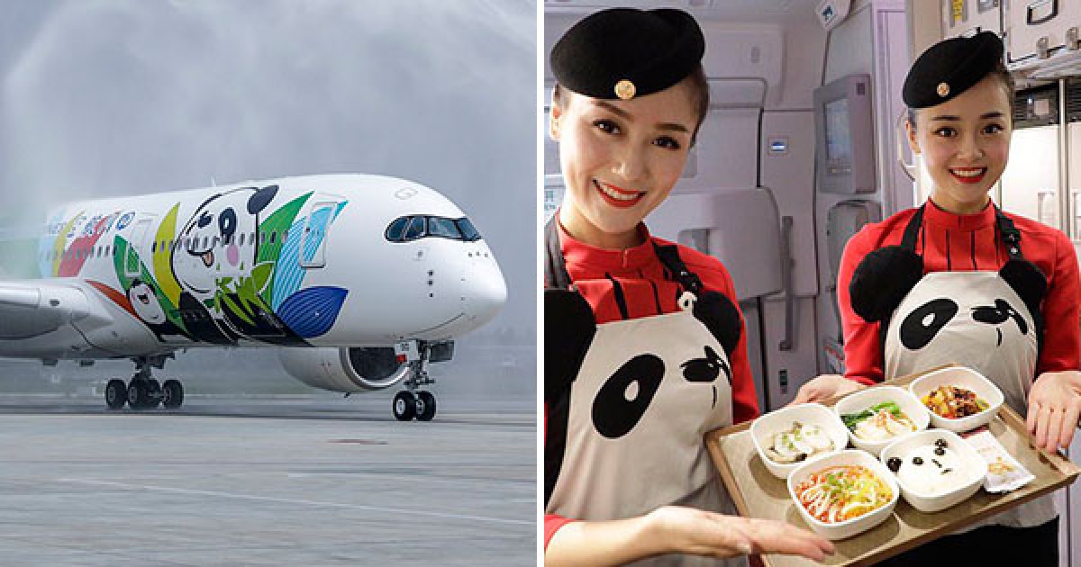 熊貓佔領的客機起飛了 彩繪、食物、空姐圍裙都有滿滿的熊貓特色