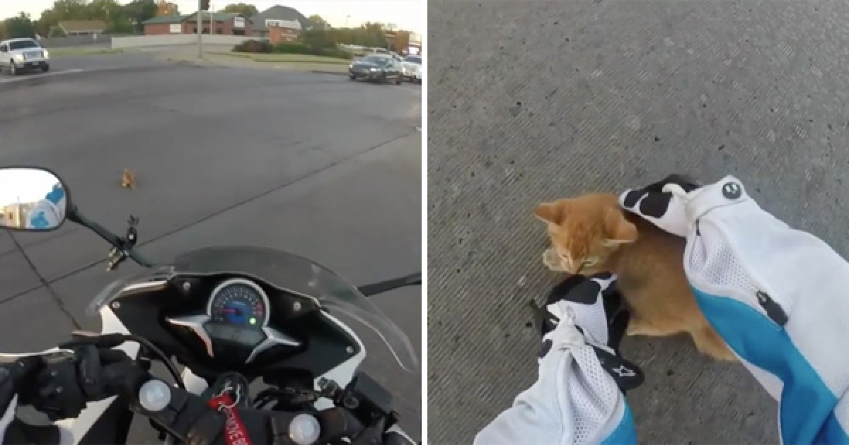 馬路上瞧見「移動小橘點」 女騎士衝到路中央帥氣救援