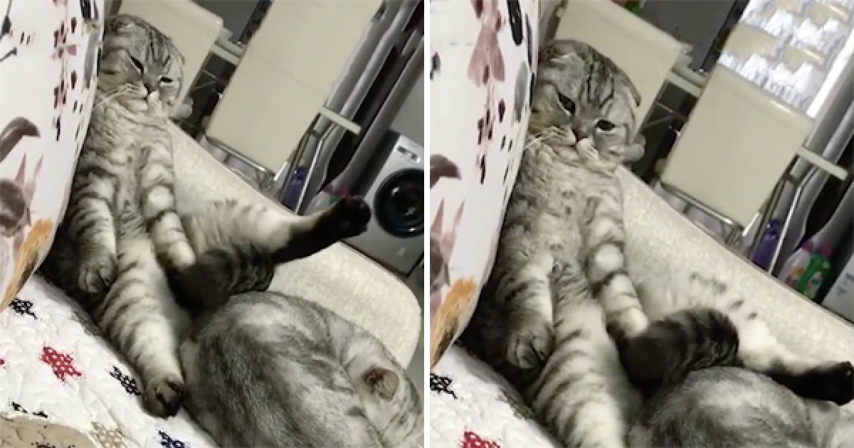 不忍吵醒腿邊的女友 暖喵「腳沒地方放」抖抖抖:好麻啊