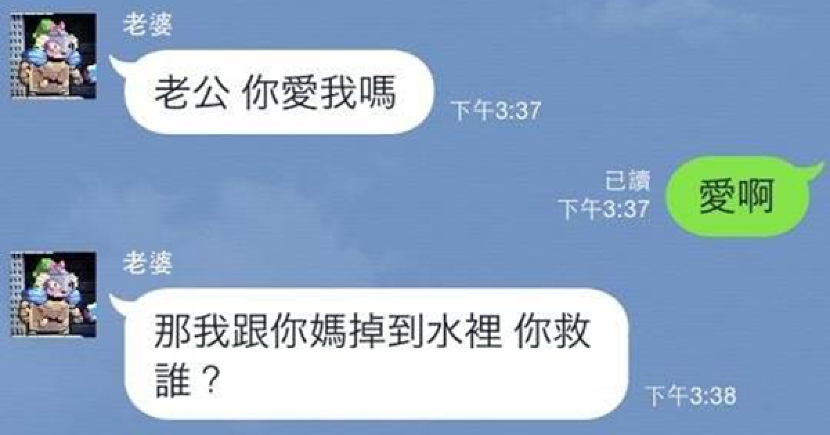 「我跟你媽掉水裡要救誰?」 他7字神解世紀難題 老婆聽完秒閉嘴