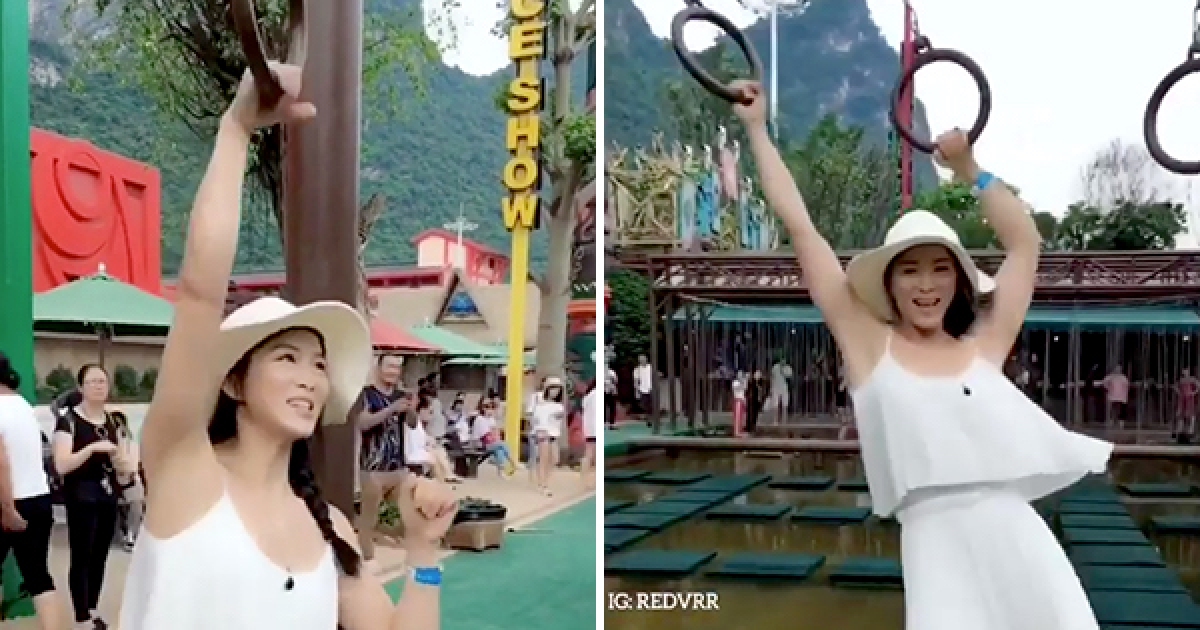 路人男不信女生能「拉吊環過河」 氣質妹秀大肌肌輕鬆甜笑:根本沒難度