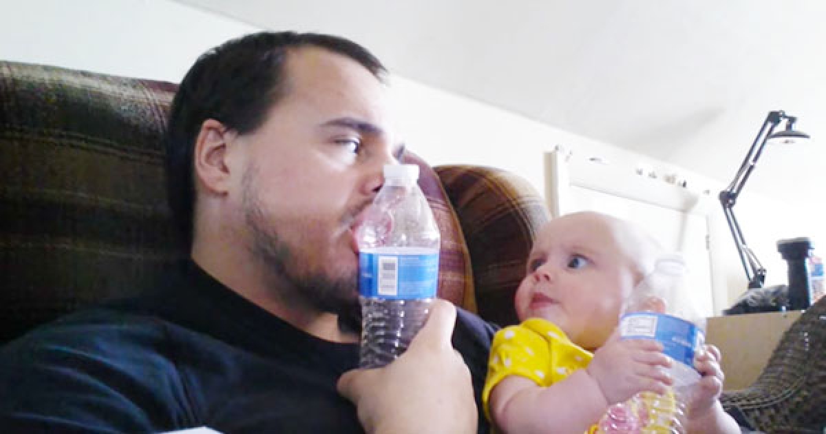 老婆不在家… 把拔跟好奇寶寶亂玩寶特瓶:好吃嗎?