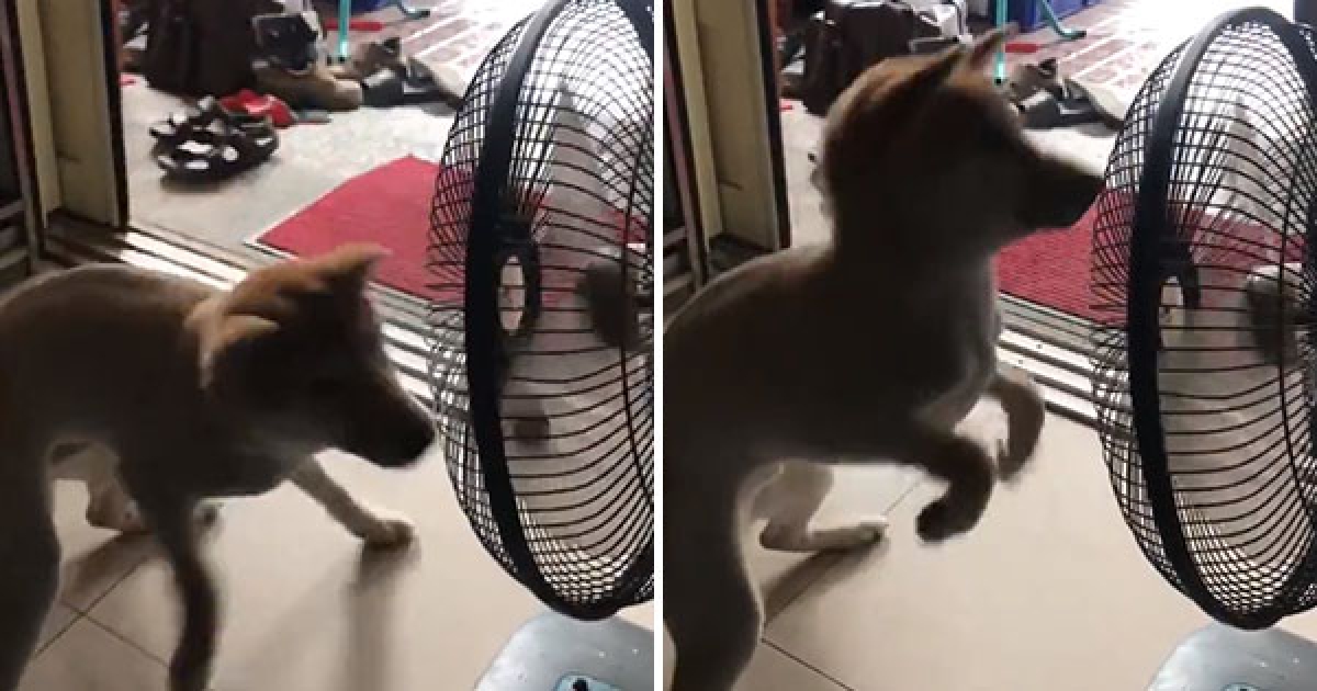 呆柴跟電風扇「學超狂頭轉」 拔插頭後一臉可惜:怎麼沒了?