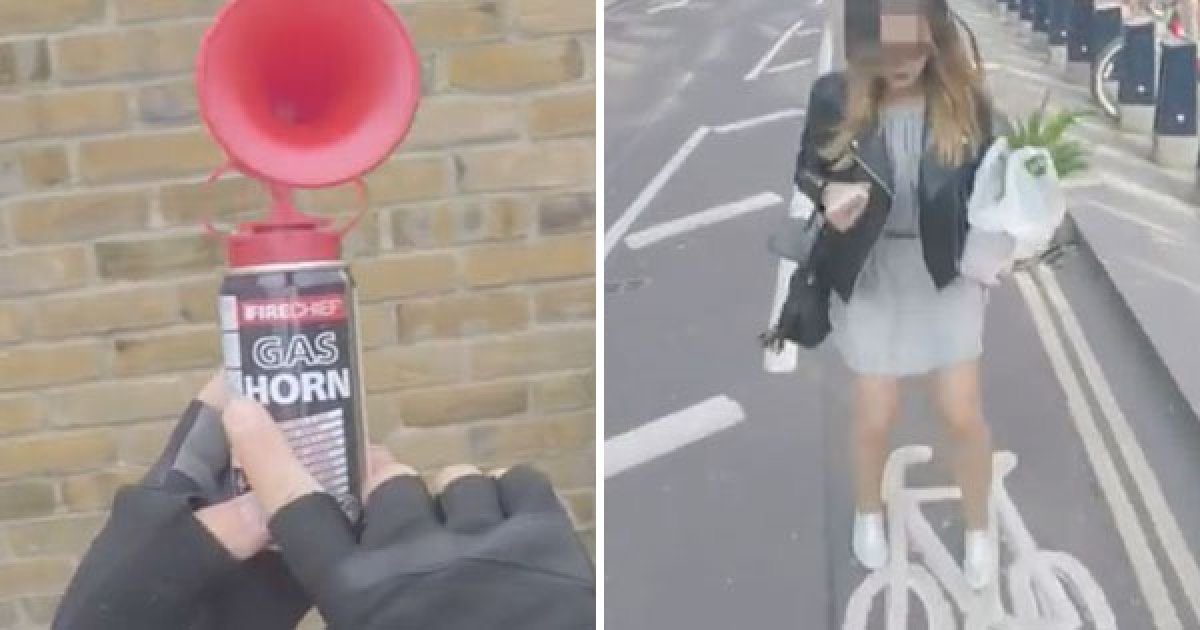 再擋自行車道啊! 騎手怒裝「空氣喇叭」 沿路按嚇退路人