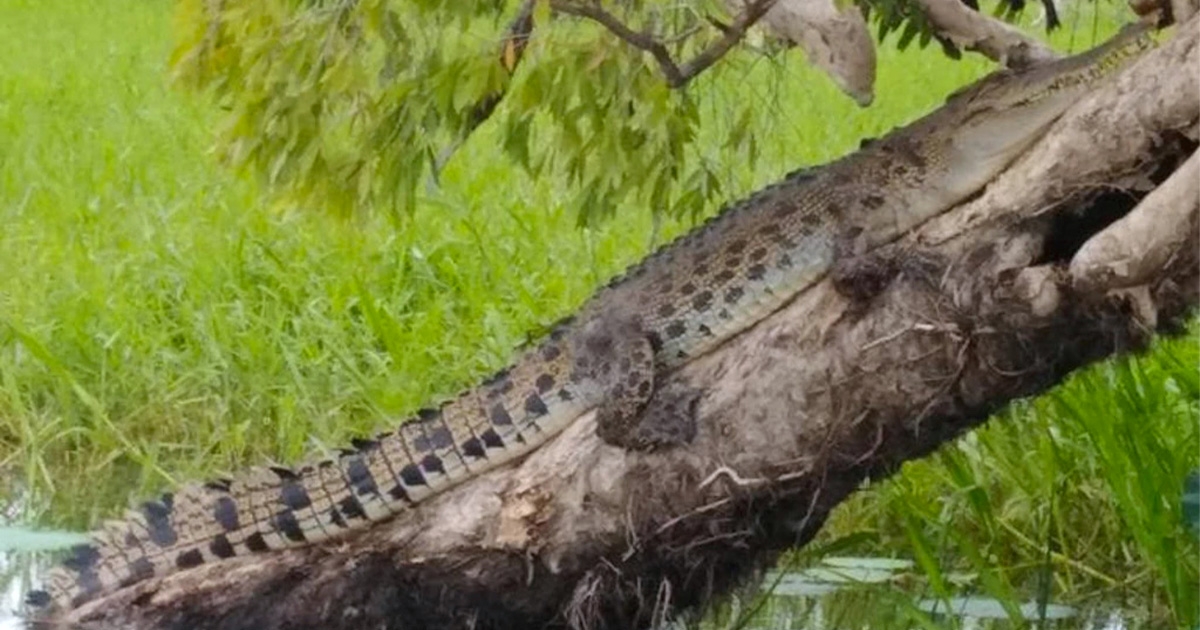 不要吵牠!釣魚男驚見樹上「3尺龐然大物」嚇到 傻眼:原來鱷魚會爬樹!