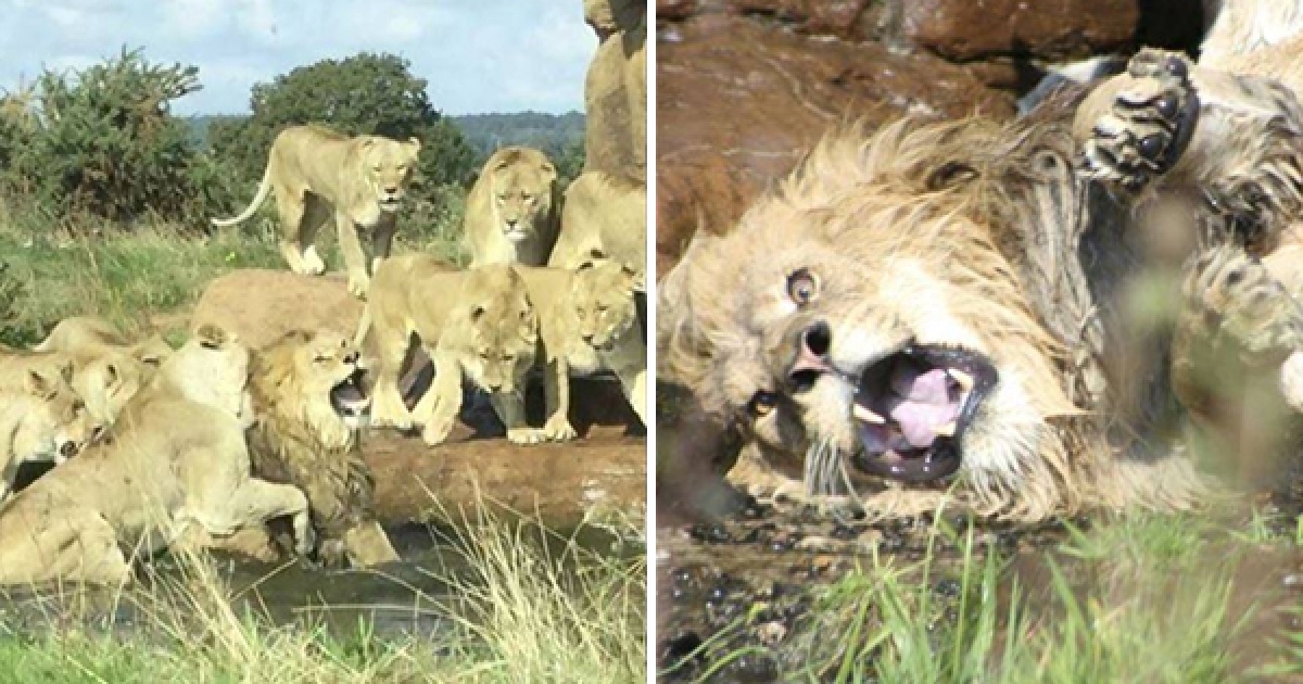 萬獸之王也敗了! 老年雄獅被「9母獅圍攻」 害怕掙扎逃命