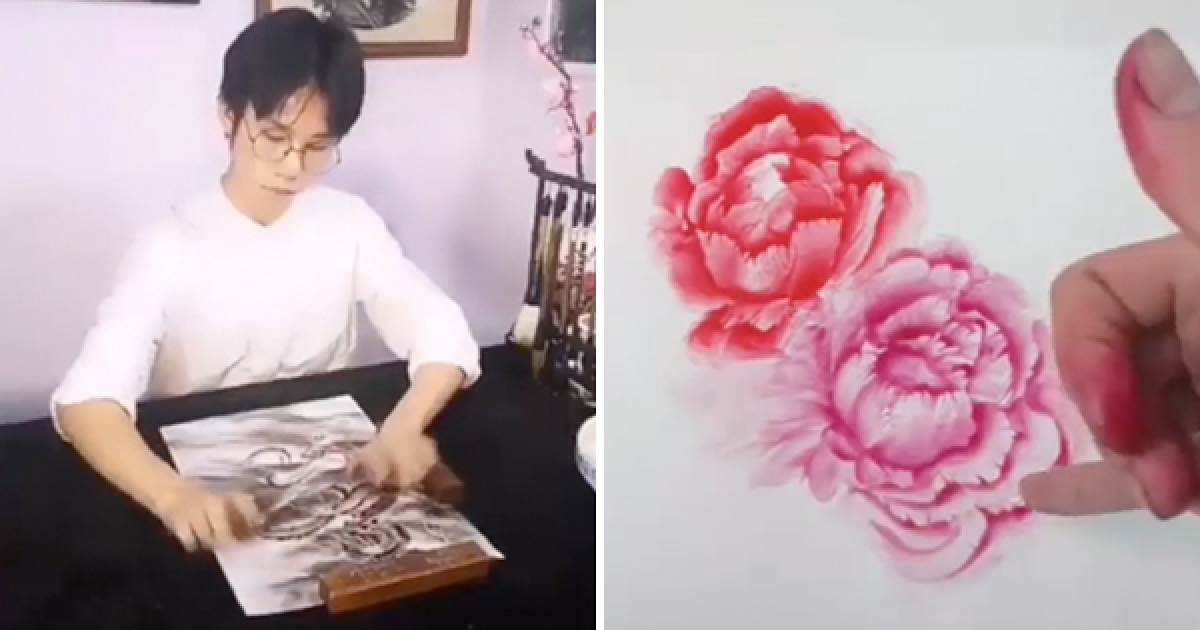 神人不用筆就能畫畫 隨手勾出華麗山水圖