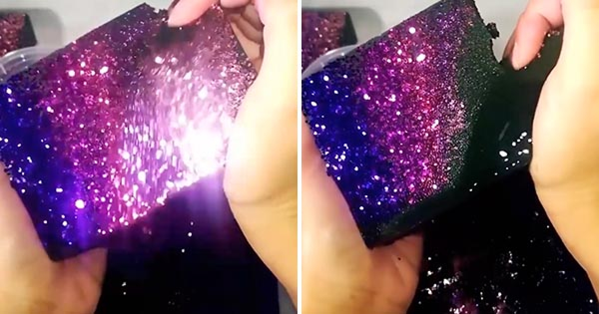 老外都在瘋玩泡水的插花海綿 加亮片手一擠「瞬間畫面超治癒」