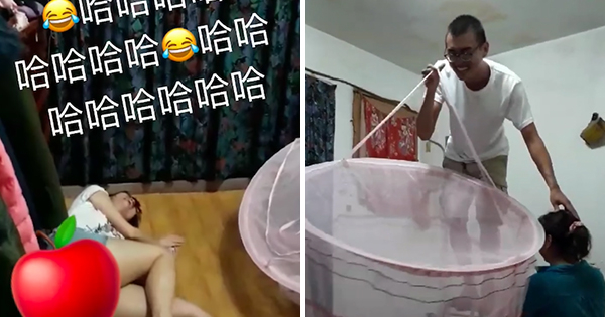 弟掛蚊帳抖抖抖逼出姐「魔性笑彈」 媽媽也聽到腿軟:妳粗企啦