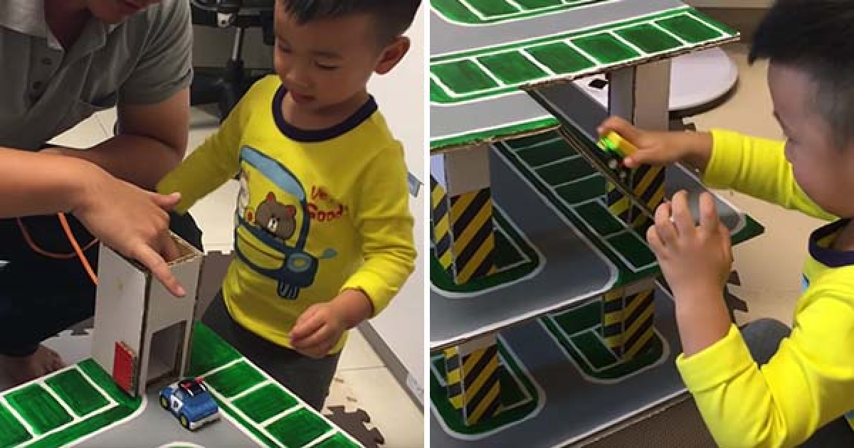 神人老爸用瓦楞紙DIY出玩具停車場 網QQ:別人的爸爸從沒讓我失望過