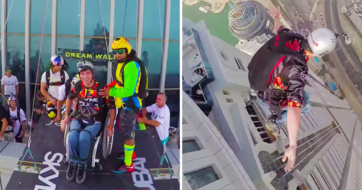 在107層樓高的杜拜建築物玩定點跳傘 輪椅男說跳就跳超熱血