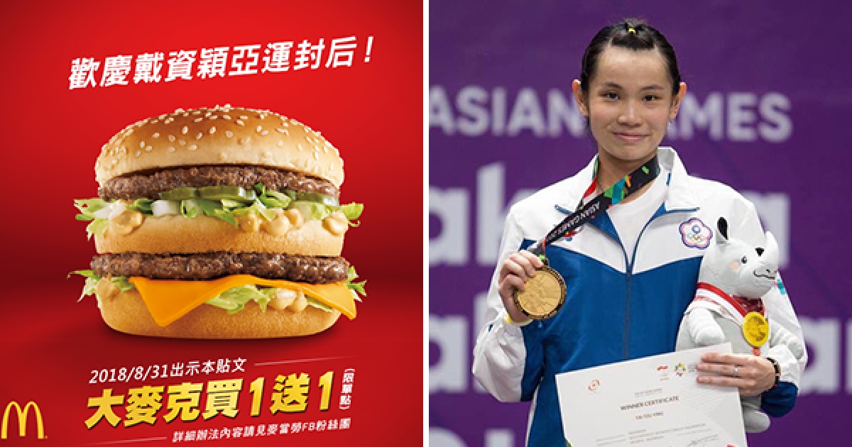 狂賀小戴亞運奪羽球首金! 麥當勞歡慶優惠「大麥克買1送1」