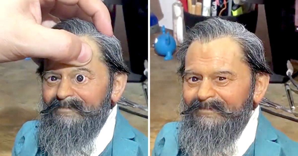 塞眼珠到仿真雕像裡 「眼皮一夾」讓它秒變真人