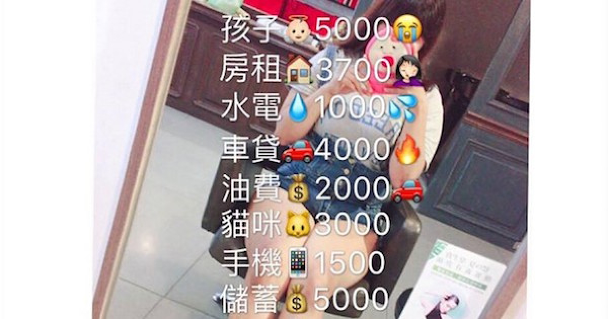 18歲少女月花32K當月光族 網一看明細驚:超省,還有養小孩!