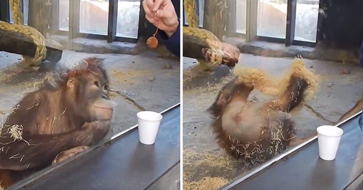 紅毛猩猩很認真看遊客表演魔術 下一秒「笑到四腳朝天」反應超浮誇