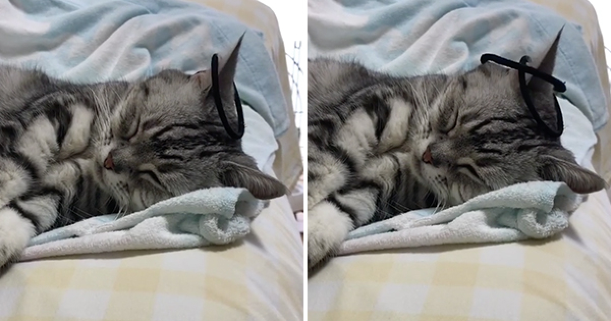 主子在睡覺「奴才嗨玩貓耳朵套圈圈」 牠只看一眼:幼稚鬼