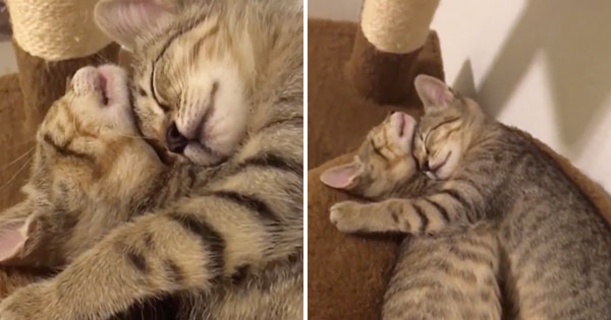 愛到連睡覺也要抱緊處理 貓情侶閃瞎單身狗:不要再傷害我們惹~