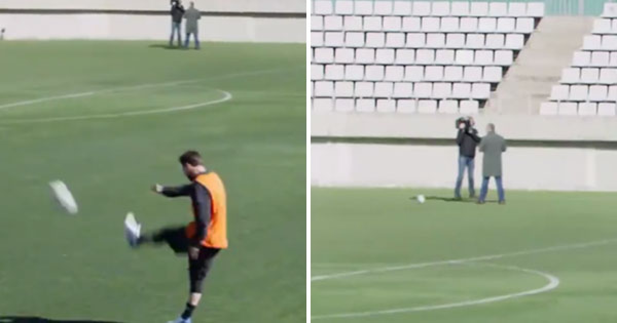梅西在50碼外隨便舉腳一踢 神射進記者的「小門」
