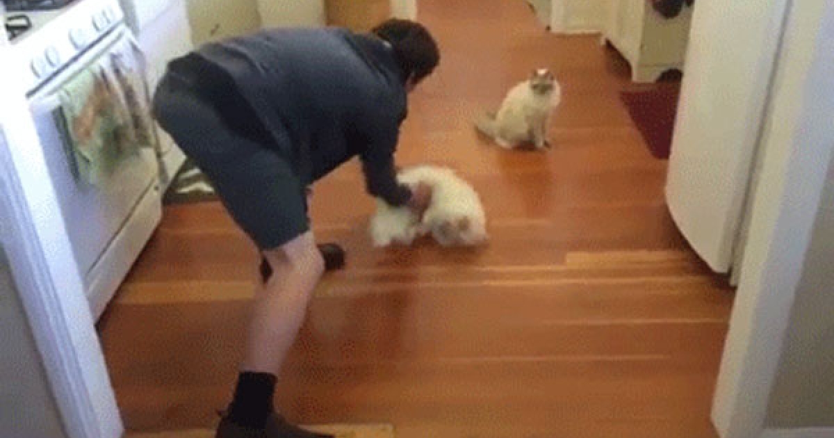 白貓熱愛滑滑樂 自動跑到主人前臥倒:快丟我快丟我~