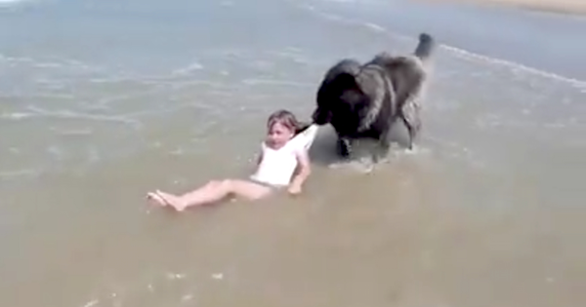 小主人被大浪沖倒 忠心狗忙「咬衣領」救主:還是岸邊比較安全!