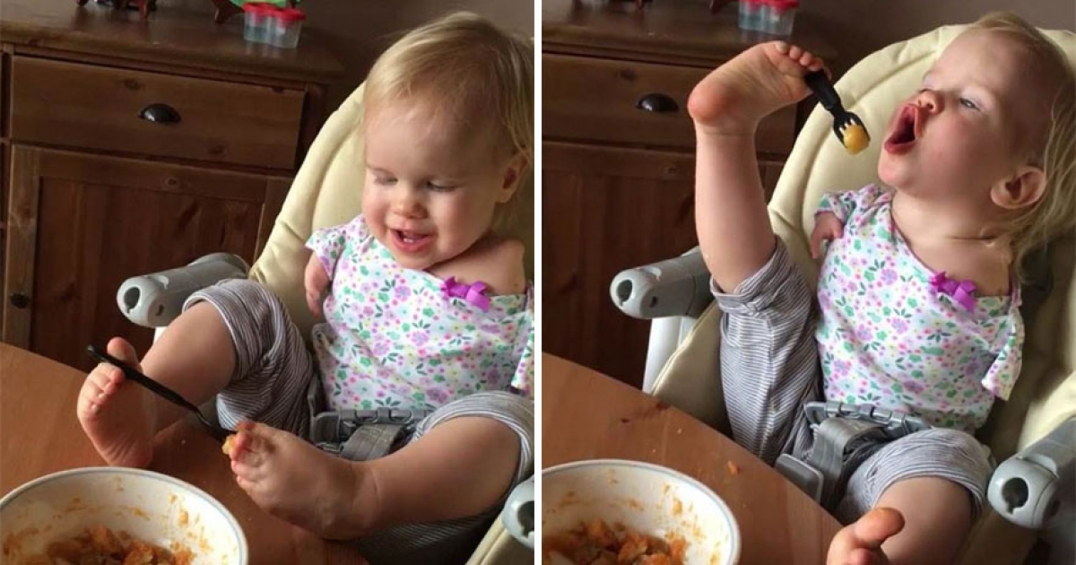 小女孩「天生沒有雙臂」依然自立自強 「腳當雙手」18秒一口飯感動網友
