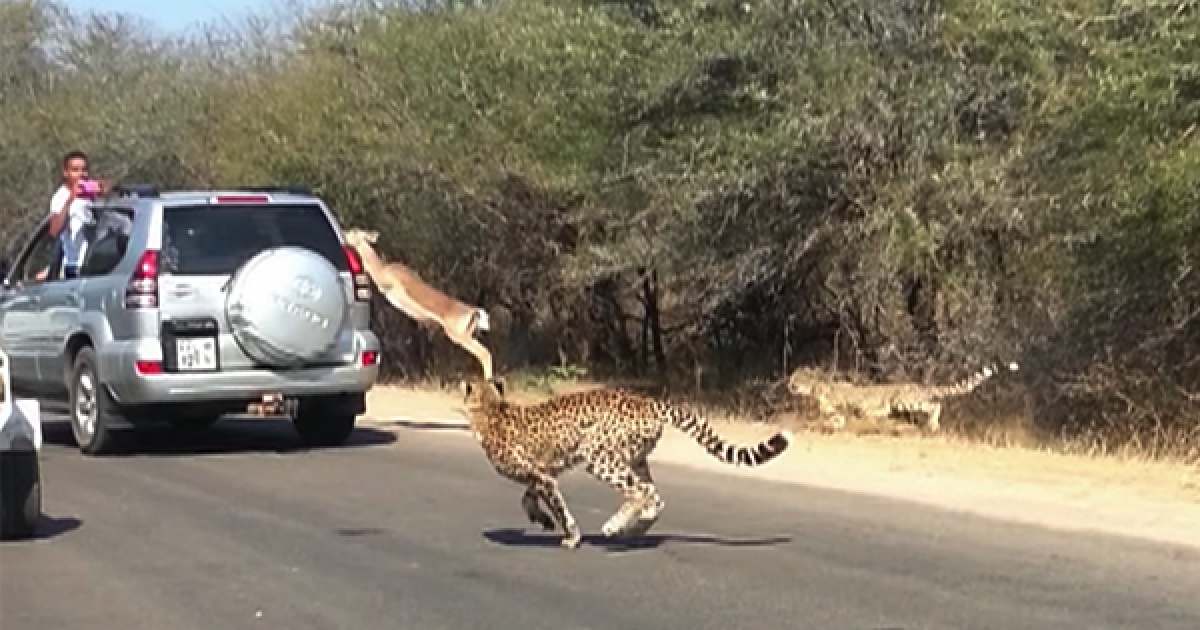 羚羊驚天一跳「躲進車子裡」保命 獵豹全愣住:這哪招啊