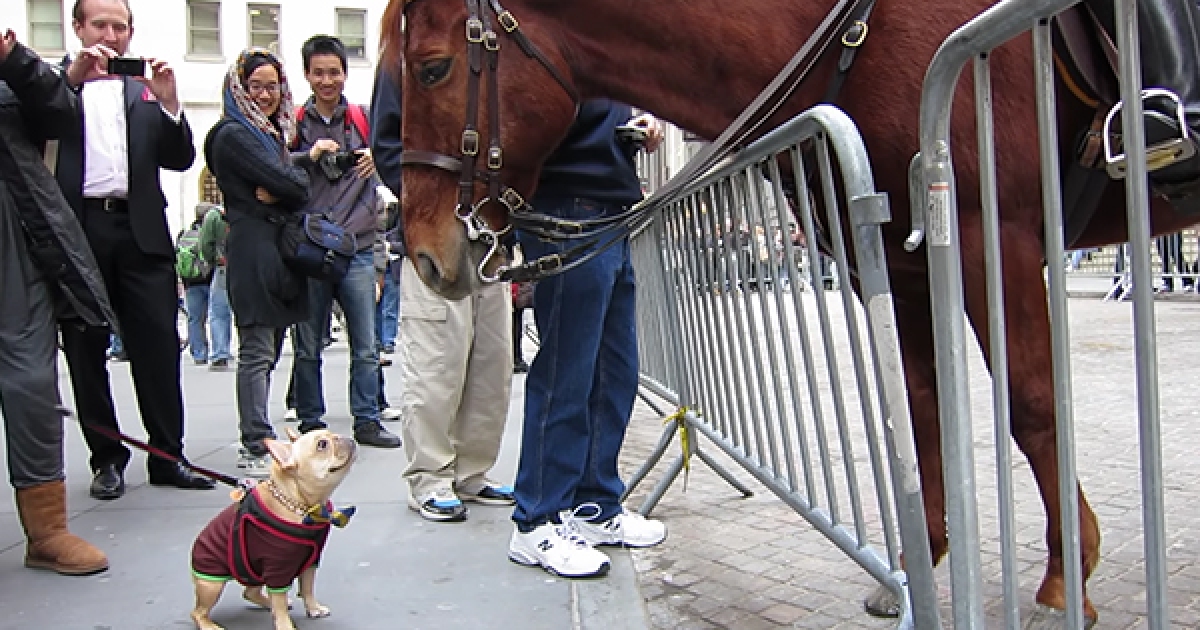 法鬥看到馬兒忍不住直盯著看 下一秒「狂磨鼻子」萌翻現場的人