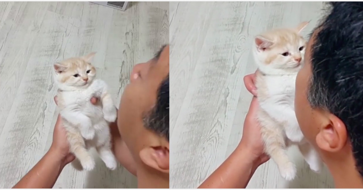 老爸瞬間智商降低 「娃娃音+親親」捧著無奈小貓:可以放我下來了嗎?