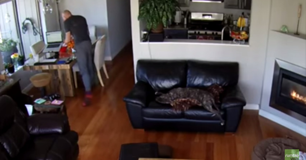 狗狗累癱在沙發上打盹一翻身摔到地板上 擔心查看發現「沒反應」一秒笑噴