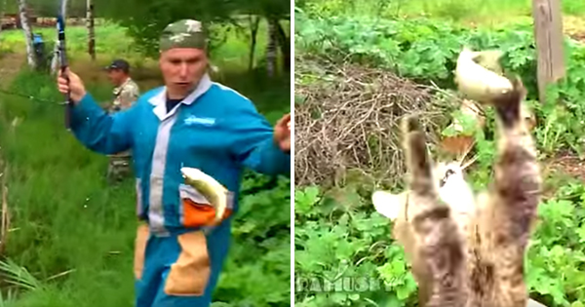 男子好不容易釣到一條魚 突然一隻貓咪「跳出來秒搶走食物」