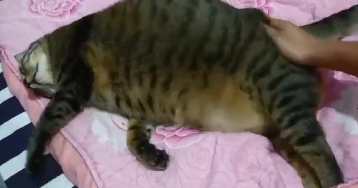 吃太胖啦!貓咪肚下肥肉一大陀 主人抖一下動全身:抖好抖滿