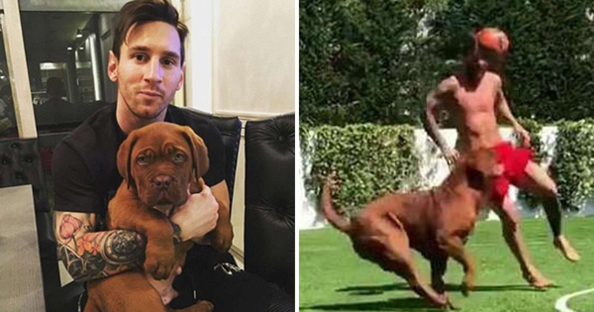 梅西療傷秀6塊肌跟狗玩球 「技術太高超」讓狗一臉呆:球去哪了?