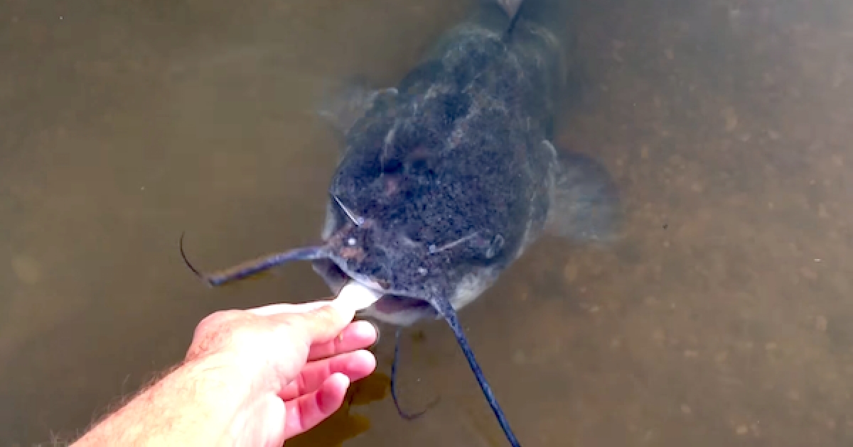 男子固定餵鯰魚 鯰魚「被馴化」乖乖給摸頭