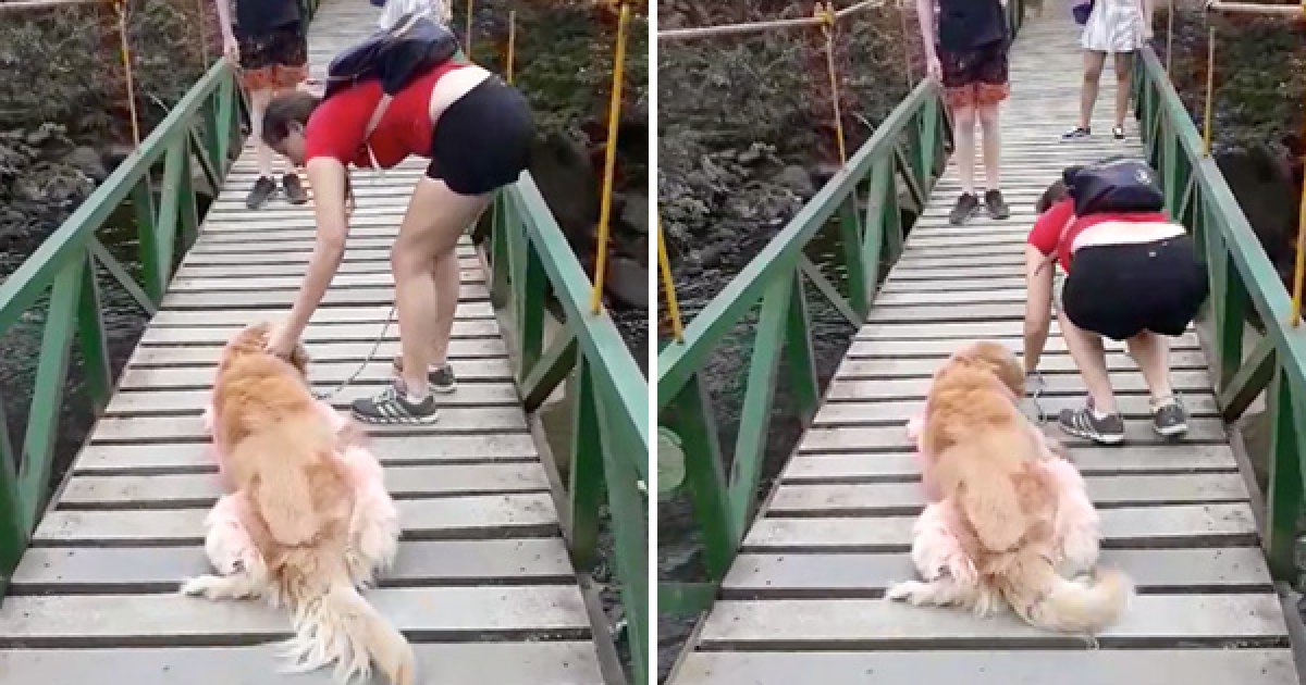 懼高症金金軟癱不敢過橋 女主人「趴地上」陪牠面對恐懼