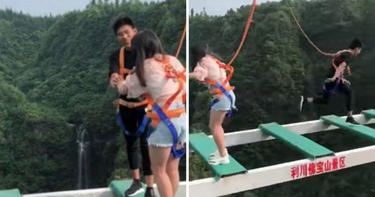 男子丟下女友在高空吊橋「笑著跑掉」 網傻眼:當天就分手了吧