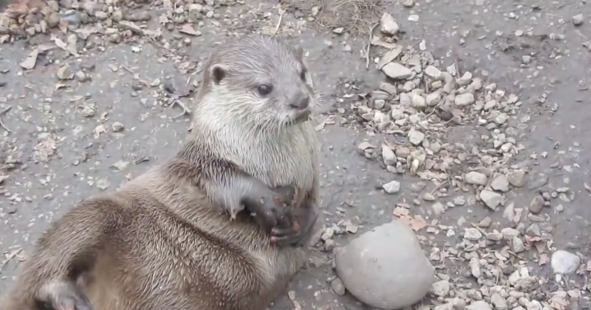 小水獺一個人玩拋石頭 靈活小短手「左拋右拋」超可愛