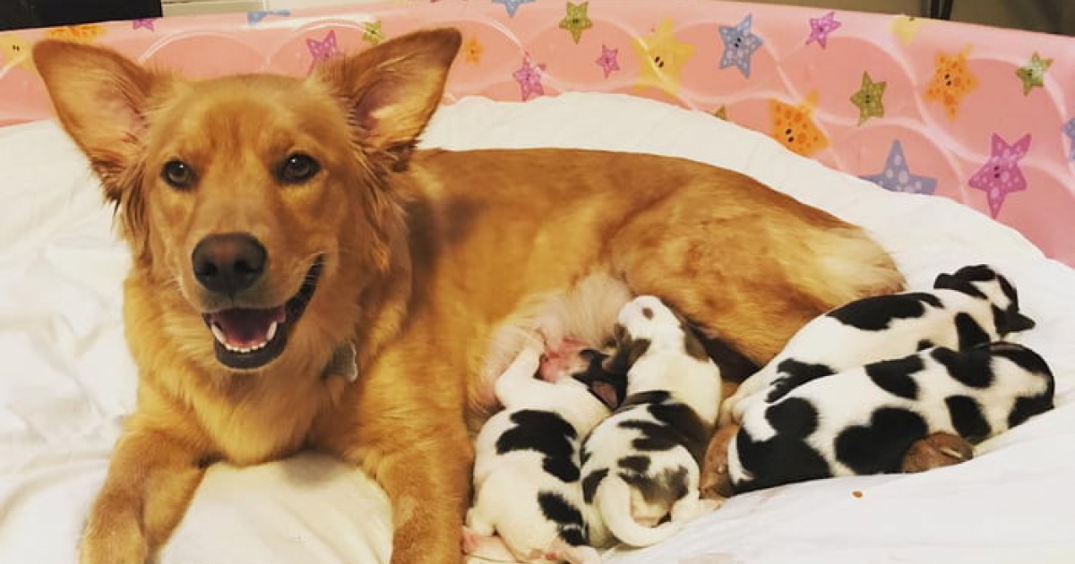 黃金米克斯生下4隻「小奶牛」 看著自己的孩子都困惑了