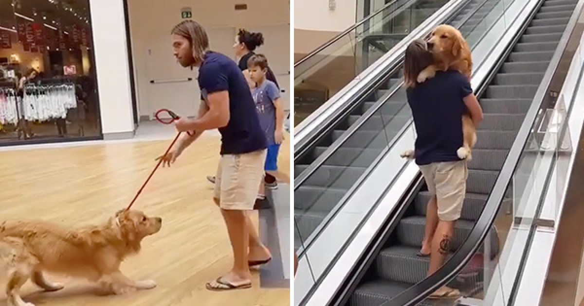 金金不敢搭手扶梯急煞 主人立刻「溫柔嬰兒抱」超寵溺