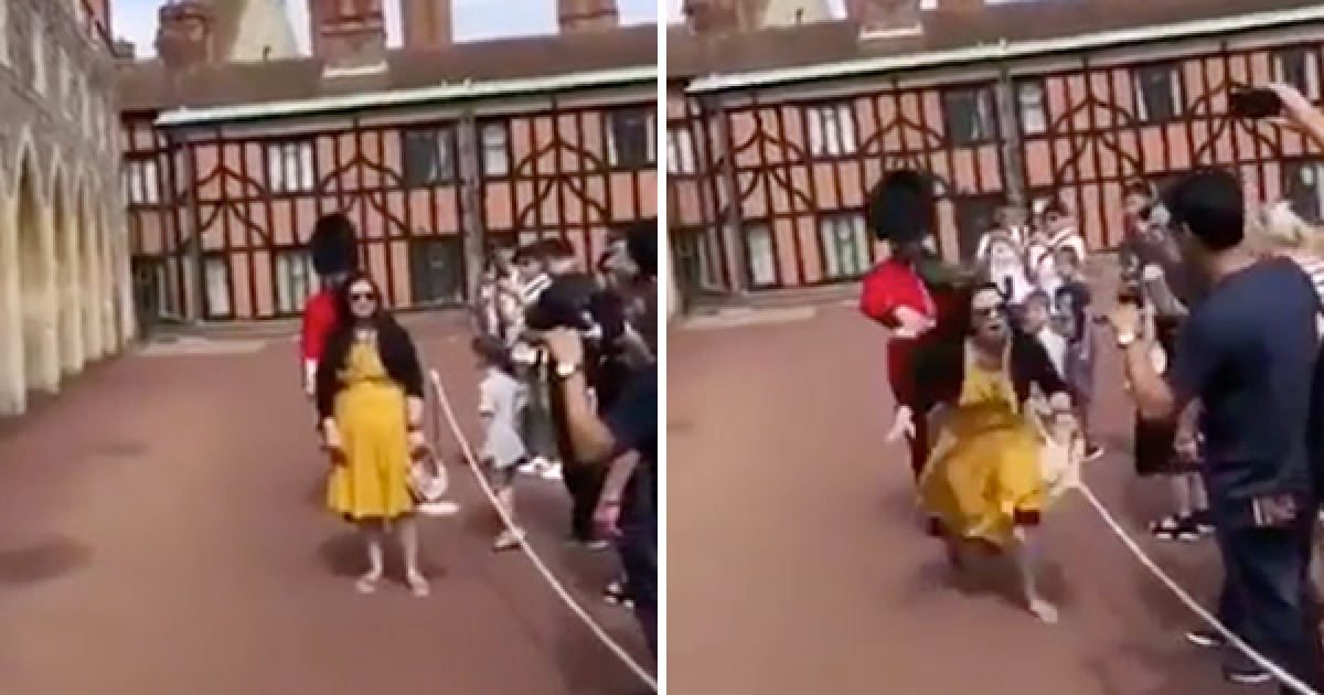 大媽無視警告越線拍照 英國衛兵遭擋路「直接出手教訓」全網歡呼
