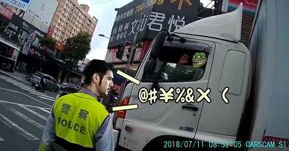騎士好端端的突然被貨車逼車 「金城武警」又罵又開紅單神救援