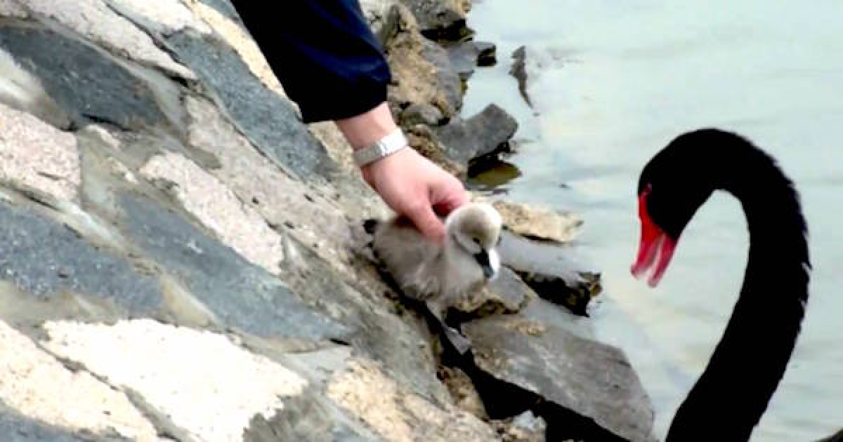 黑天鵝寶寶啜泣「游泳我怕怕」 爸媽無奈請人類幫忙