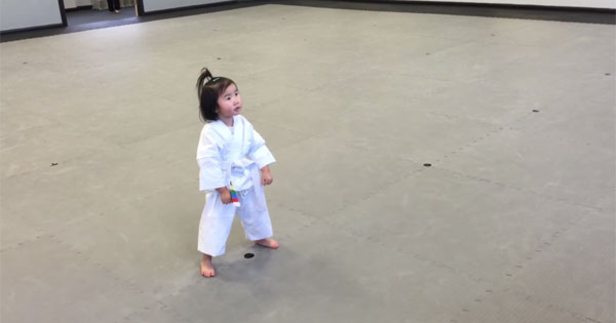 3歲女娃第一天上跆拳道 「奶聲奶氣」背誦信條:我超認真der!
