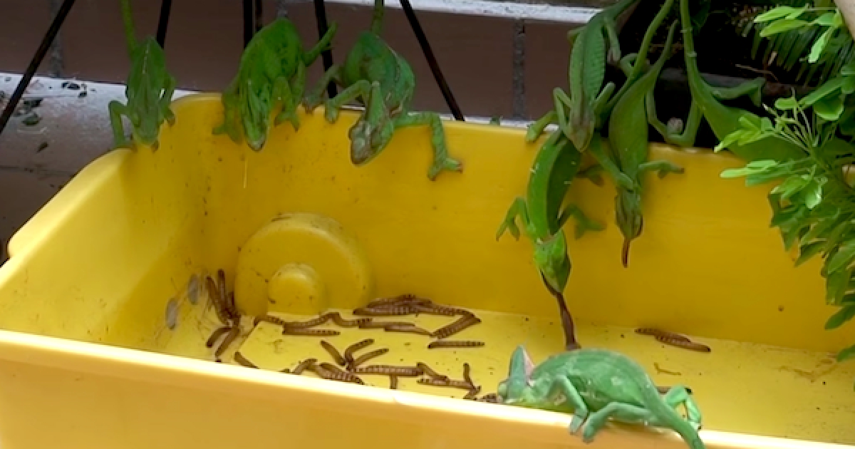 放飯啦! 變色龍展現準頭 「神速吐舌」黏住蟲蟲