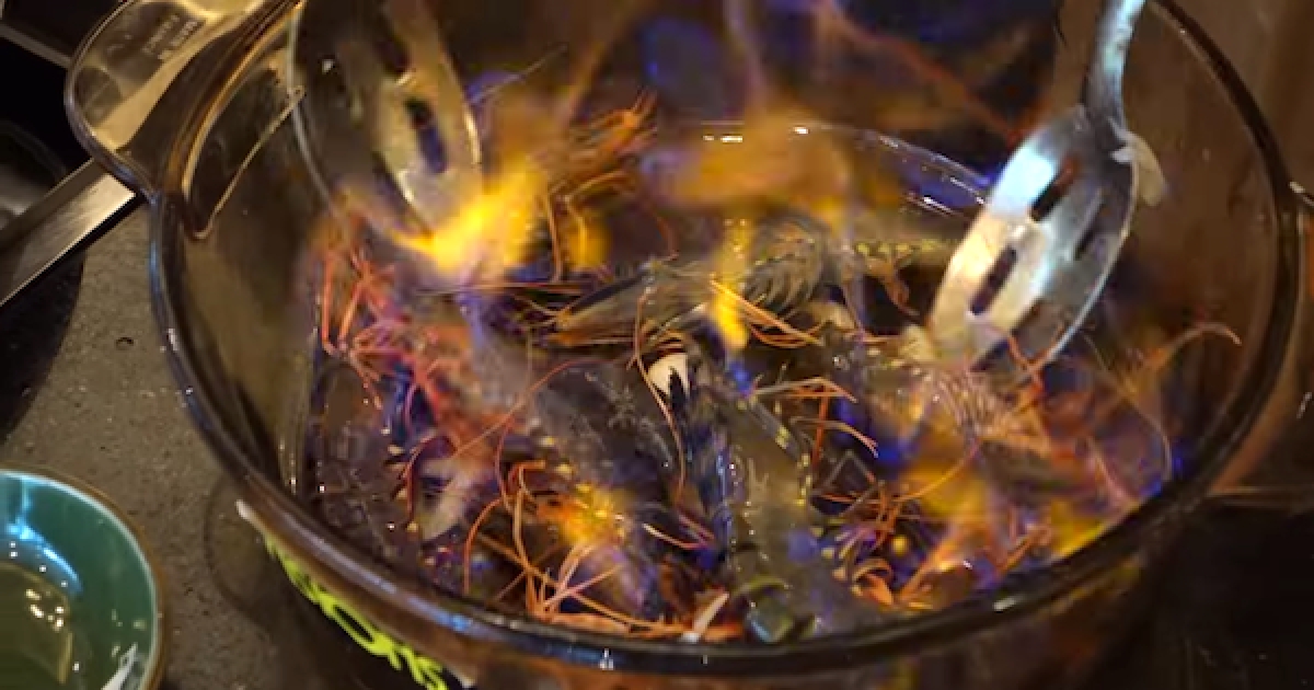 一把火點燃活蝦 廣東名菜「火焰醉蝦」讓顧客看呆了