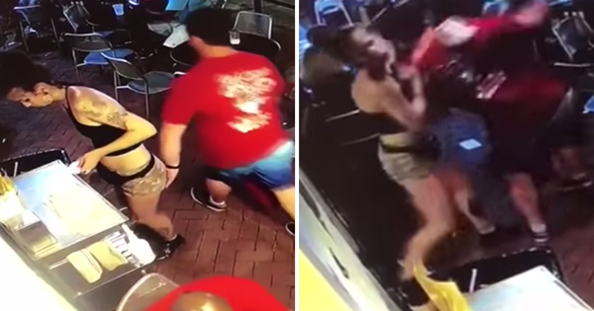 辣妹服務生被偷摸屁屁 爆氣「鎖喉怒摔」讓變態叫不敢