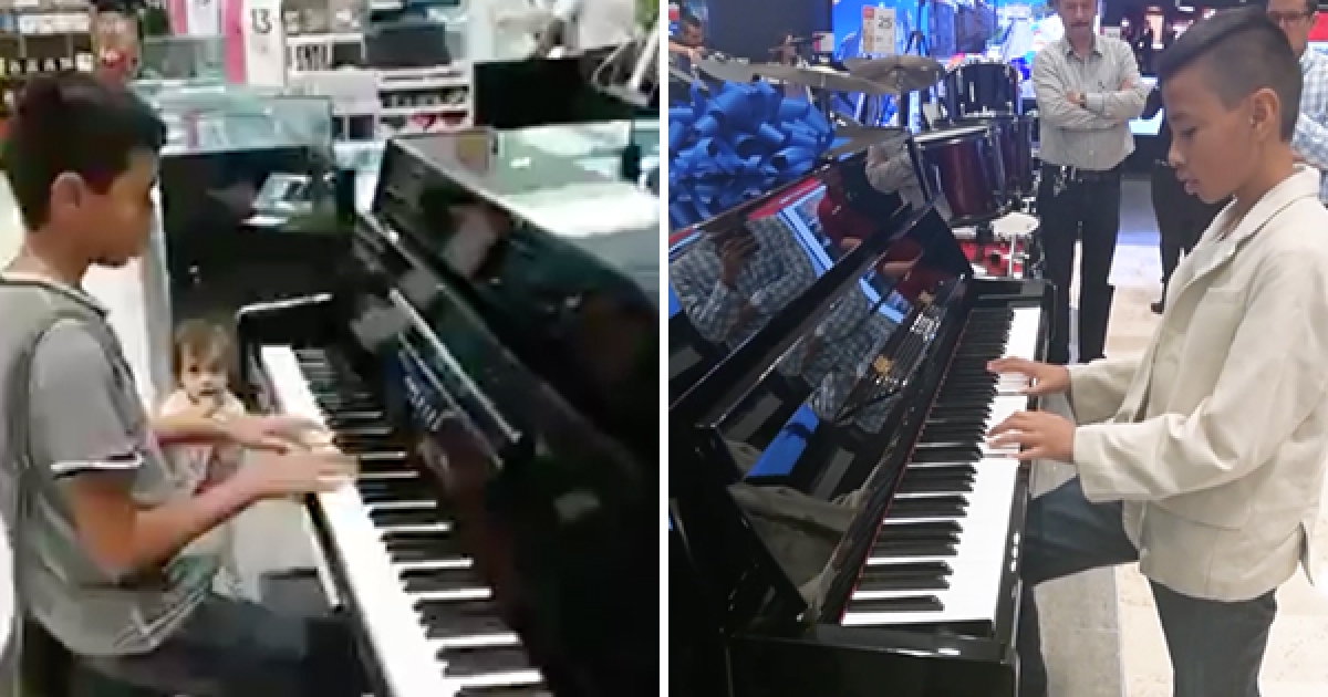 大賣場裡隨性彈鋼琴的男孩被找到了 老闆特別邀請他正式彈奏一曲