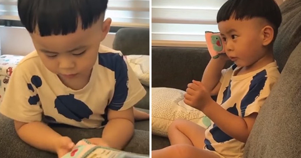 小小孩用「奶音台語」假裝打電話 網友融化:好催生喔